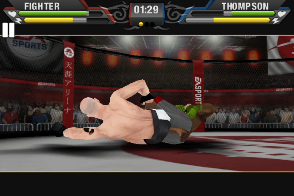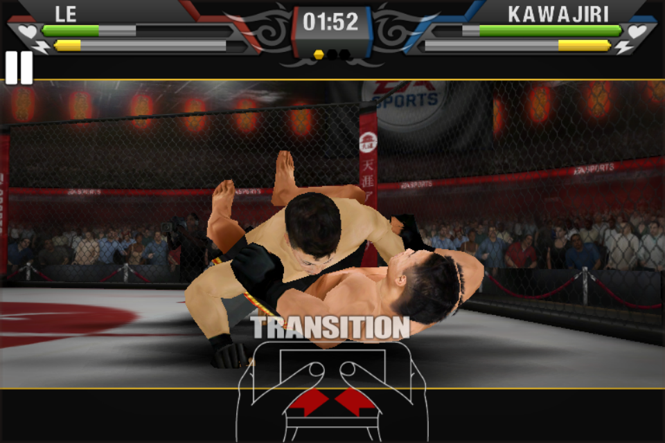 The controls are the biggest issue that keeps the title from really becoming a must have for anyone outside MMA or fighting-game fans however the presentation is really well done. Voice commentary, great graphics, lots of options to choose from and fights to relive are all very well implemented. The way the fighters escape and switch positions on the ground are very well done and made me feel sometimes as if I was fighting in that octagon — and forget this game is running on an iPhone. With some improvements to controls and technique variety I could really see this title become an iDevice-fighter benchmark.