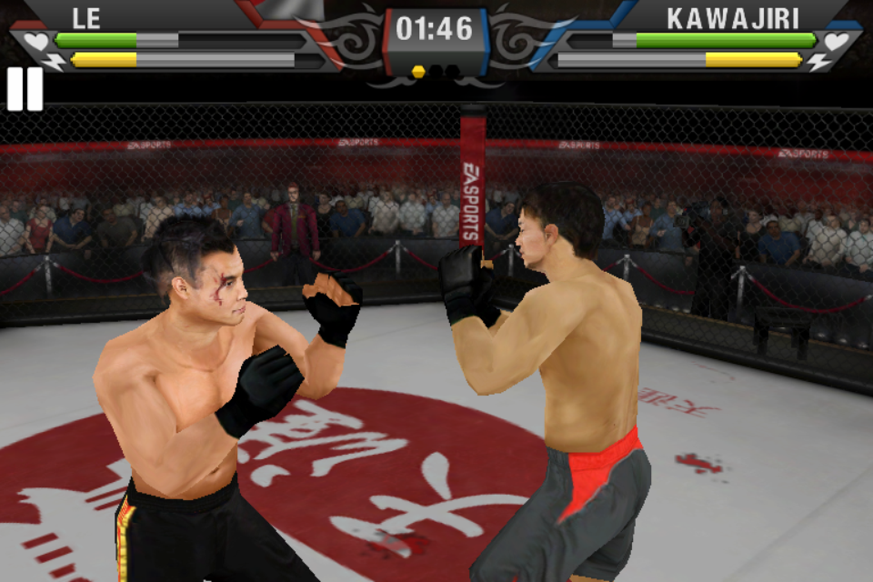As for movement, it is done by tilting — tilt inwards or outward to do a side step or left and right to move in those directions. The movement in this game generally is very unresponsive and is one of the biggest drawbacks of the title. Sometimes a wrong tilt is recognized and the fighter will take an outward instead of inward step for example. If EA can add other control options such as a touch dpad in future updates, it would really improve the game as the controls are it’s biggest downfall — especially movement.