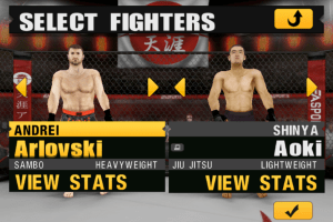 I suggest to fix the controls to either make them a lot more fluid and responsive or to at least add a dpad control method when walking (the grappling or ground fighting animation is very fluid on the other hand). The fighters also need to be able to run in toward their opponents or change speeds for takedowns rather than walk in such a robotic or rigid fashion. I would also suggest some online multiplayer fight-mode to be added. More options in terms of submission techniques could also be added so you wouldn’t have to wait to be on the bottom to do a guillotine for example but can from a standing clinch — same thing could be applied to takedowns or throws with more variety needed. I would also suggest iPad native-resolution support.