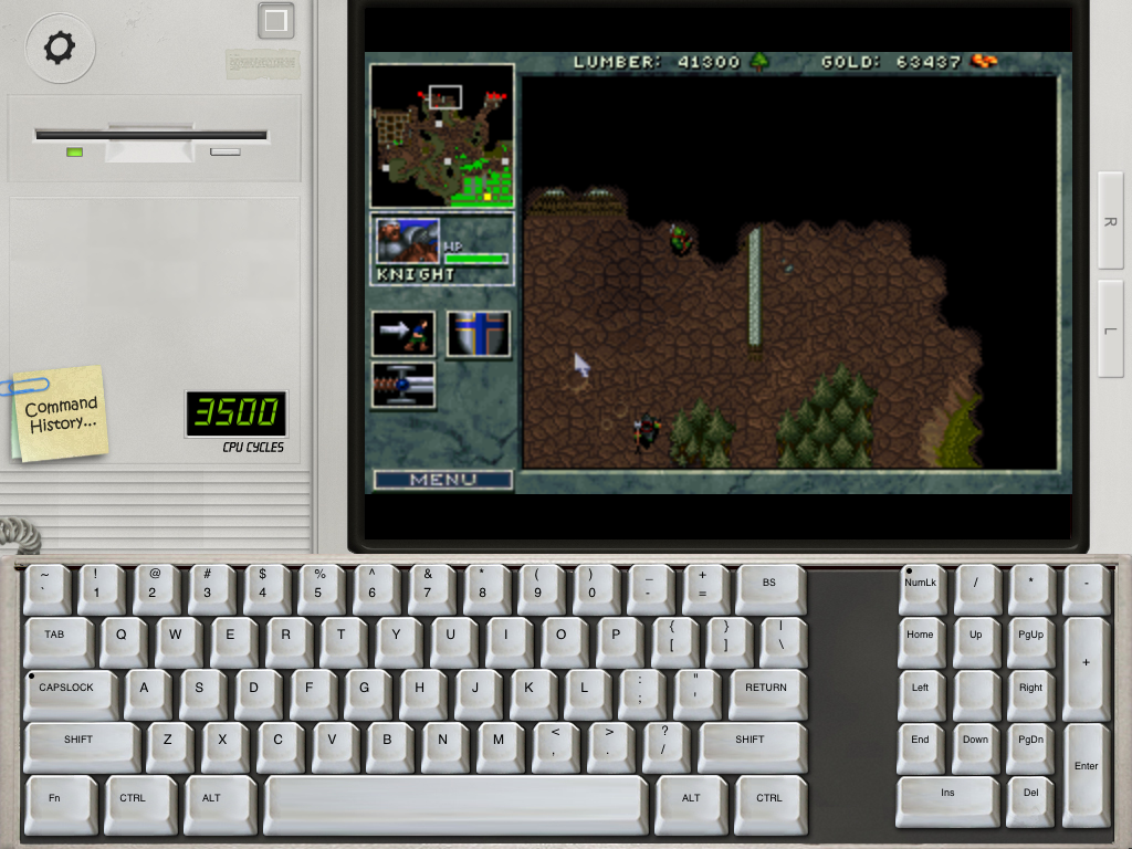 One thing the emulator has shown me is what is possible in the iPad’s future. If games like Warcraft can be enjoyable and fun to play imagine what Blizzard could do with RTS games if they embrace the device like ported all three Warcrafts to the App Store. What’s interesting is many pc games could be done with a fake mouse icon and this has hampered some genres before. The emulator shows that a fake icon that you control via touch but not directly touching the icon itself but touching the screen near it thus not obstructing view, can work quite well. The iPad’s screen is big enough for this kind of control to work. Before fiddling around with this emulator I was only exposed to RTS games on the App Store that have direct finger control like touching units or drawing boxes around them for control. This brings a whole new idea and option that can be done for such genres like RTS games. What bugs me about the current way RTS games selection controls are is sometimes you end up selecting the wrong units or have a hard time making a box the perfect size with your fingers for the units you want to command.