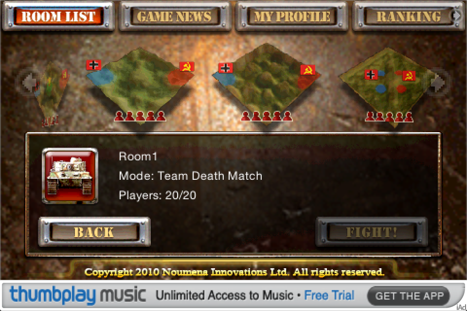 Please add a purchase-version of the game that doesn’t require ads to pop up after being shot. This caused me so much frustration seeing my tank destroyed and quickly the screen turning to some ad or a foreign site as I thought I was still clicking the fire button only to find out I just got destroyed. The ads are also in the multiplayer menu when choosing a game to join so it’s not like that is the only time possible to implement them. I would also suggest more game modes like a survivor type of mode where the last tank wins. There also isn’t really any non-team based options here outside the offline-practice mode for deathmatch fans or lone warriors to play. I like how the developers added the ability to customize your icon image and username in the profile menu.