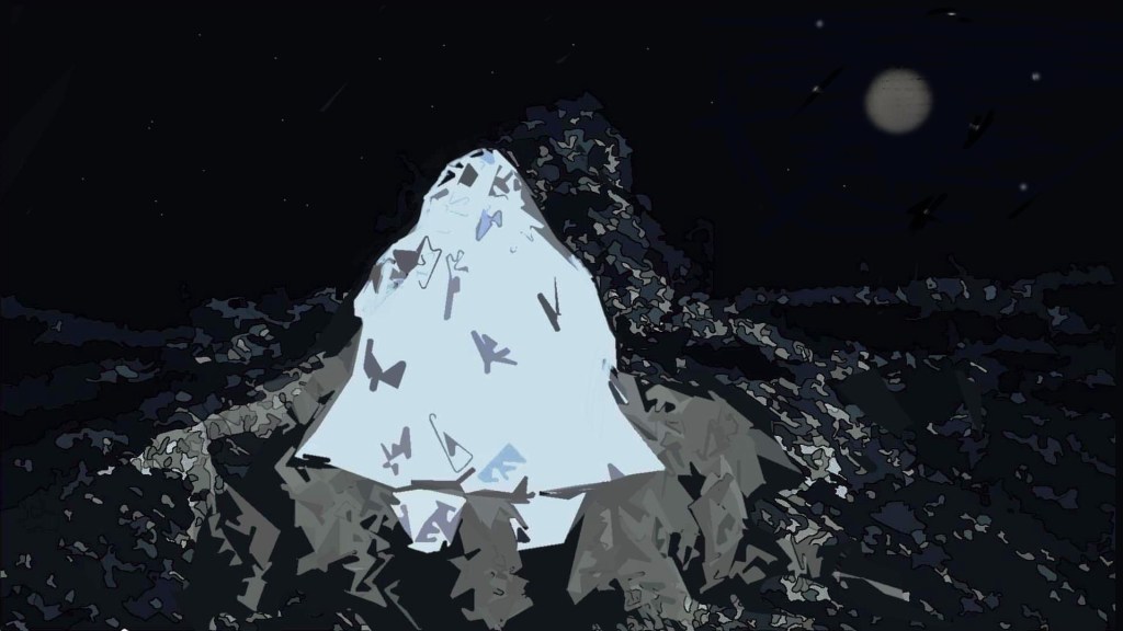 I think the idea making it black and white works well because it is more of a comic book style of a backdrop that way. With the previous two side by side pieces (not last one above, but above it), I tried adding a wall or clear definition of a cave of sorts, but I think making it a bit more abstract works better for this particular project.