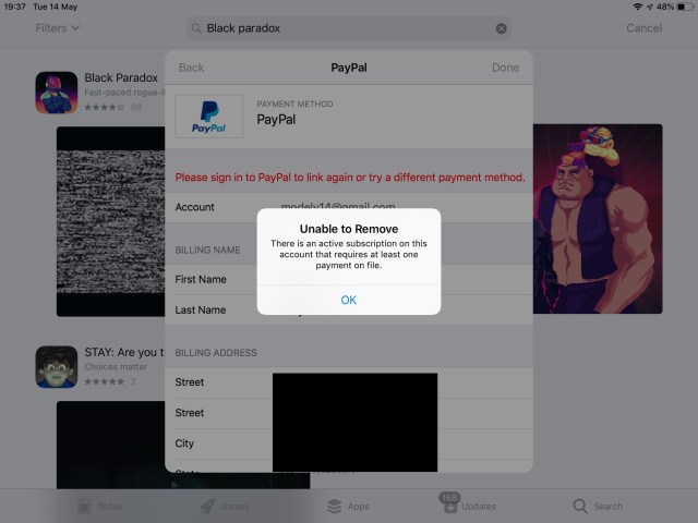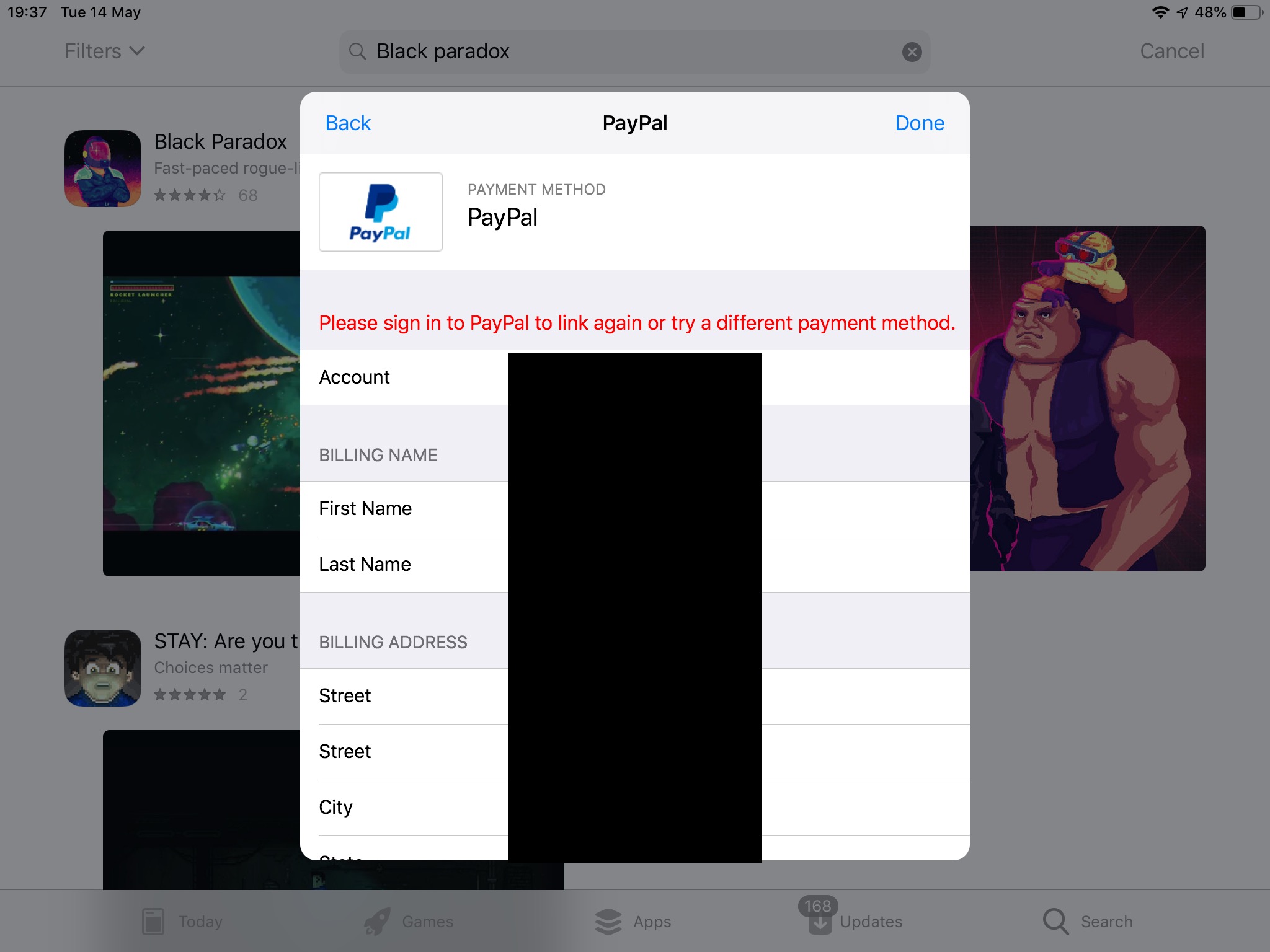 It asks me to sign in again even though I already have a PayPal account from the US associated with my Apple account and I’ve never previously had problems with purchases.