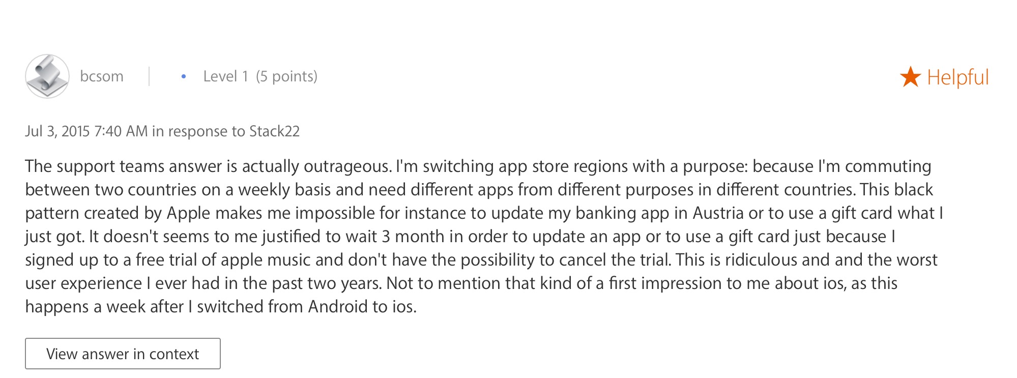 Thanks a lot Apple for treating one of your loyal customers for years this way and having such backwards of a service and subscription odel in place, particularly among different regions of the world. The bottom line is that Apple should fix their services and payment options before going full in with their services packages they are proposing for their userbase.