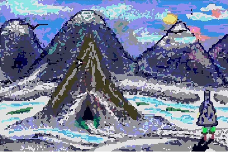 Below are some of the results of this fantasy landscape idea. I would call these pieces, “Abstract Fantasy-Based Pixel Art Landscapes.”