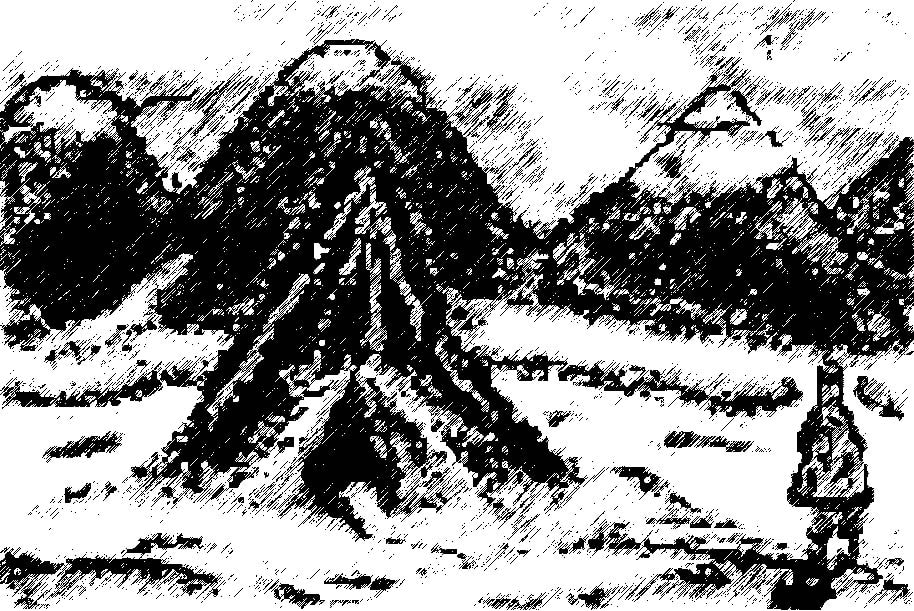 If you want to check out more of my fantasy art concepts, read my previous blog post here. It includes design samples (scroll down toward the end of the post) that are the original landscape shown here before inputting the cloaked figure and other additions and pixelizing it.