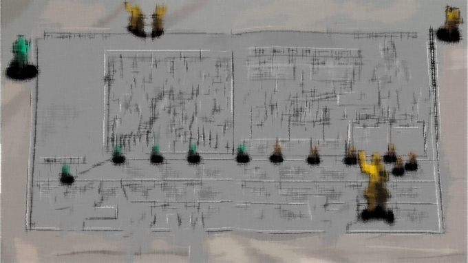 The article had an image of a man holding a weapon on the upper right hand side I drew on paper using lead. I have later went over this character this digitizing him and hence why you saw him in my fantasy piece recently.