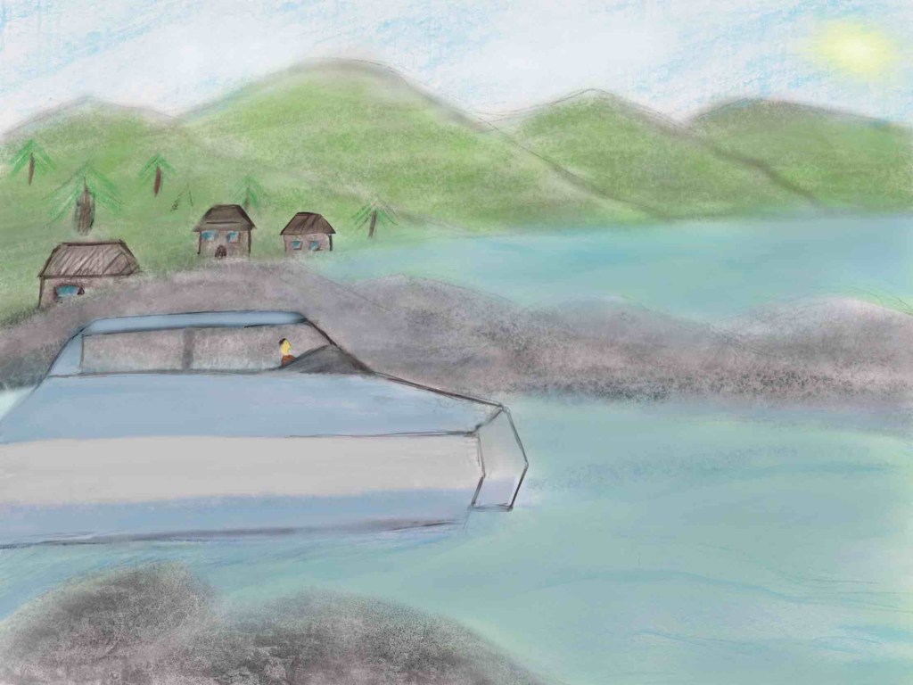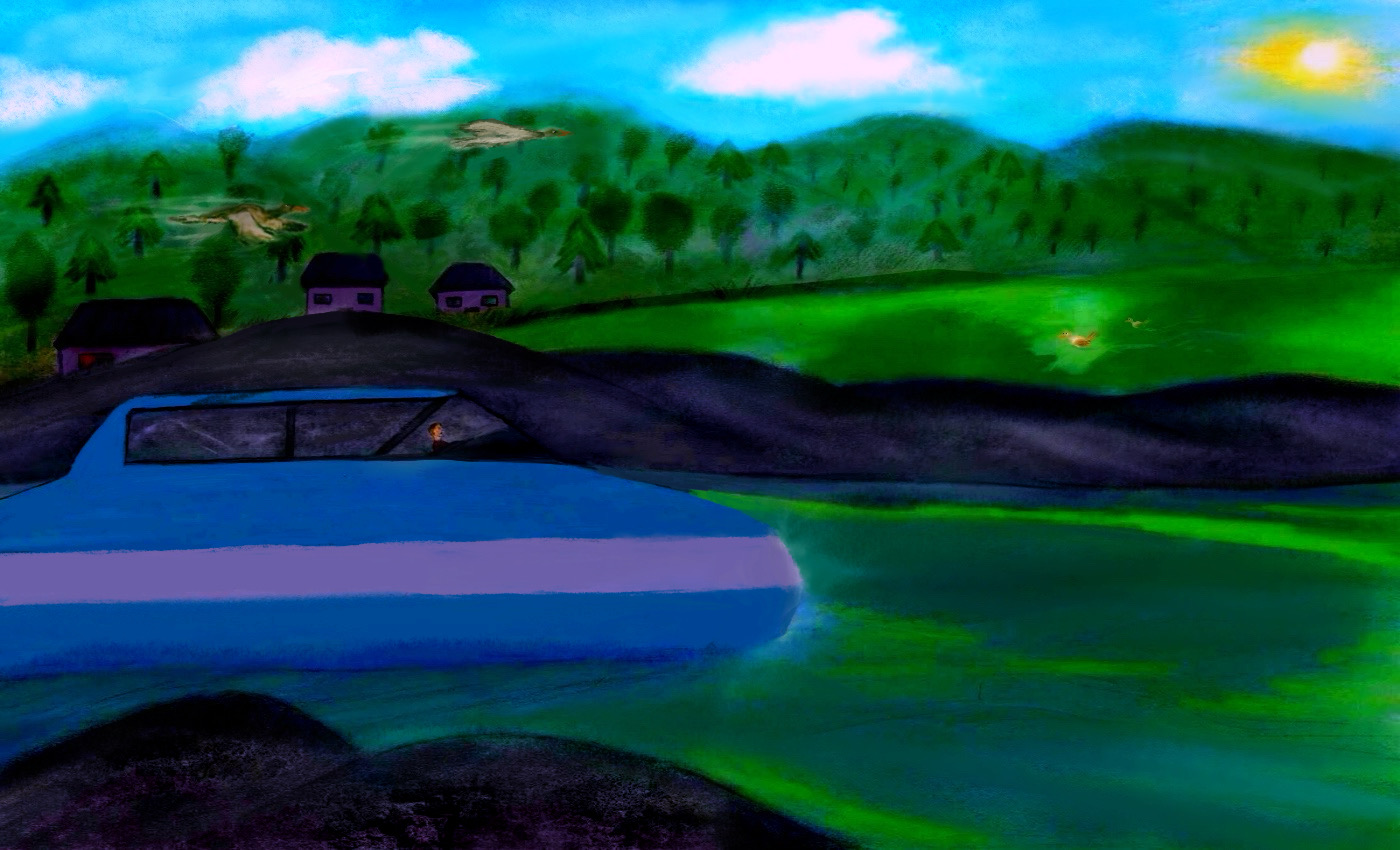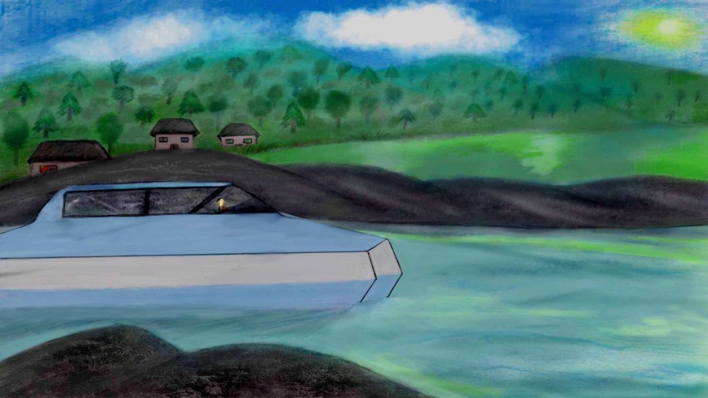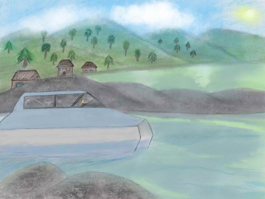 When I was in Korčula, I started a digital sketch on my iPad that you see above. I was sitting down and eating breakfast as well as drinking some coffee off the main walkway overlooking the sea when a speedboat rode by. I then started. todo a quick sketch of the speedboat and the background around.