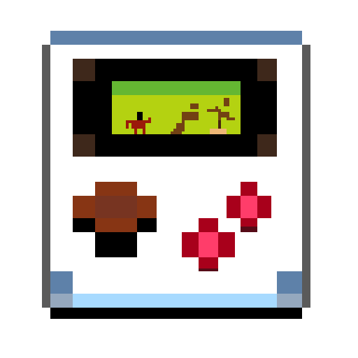 Something else I am working on is pixel art of user interfaces and this time of a Gameboy-like device that shows a game running on it: