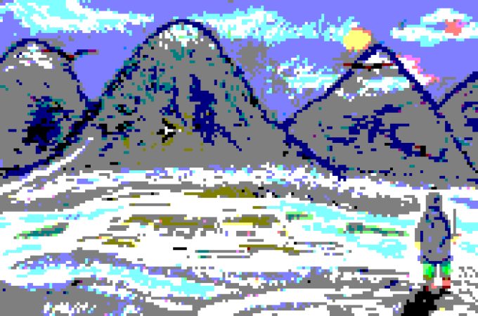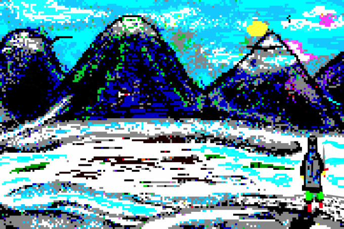Here is a version with some scanlines added in for an even older-school look: