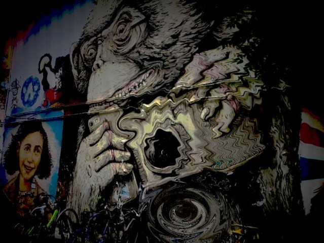 Some more recent photograph enhancements and manipulations done on my iPad from older photos I took on my travels of various places such as a bar and the Anna Frank museum street in Berlin: