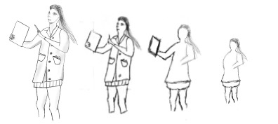 The version of the female holding the pen and pad above is one of the forms. Here are the others (have been in the Illustrations page for a while) and I will update this blog post and the Illustrations page as I keep updsting these designs: