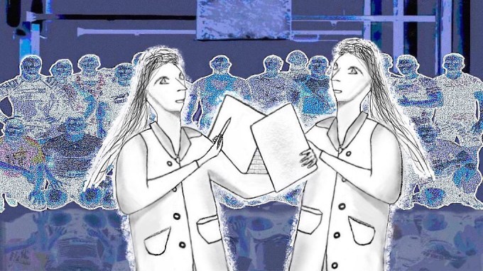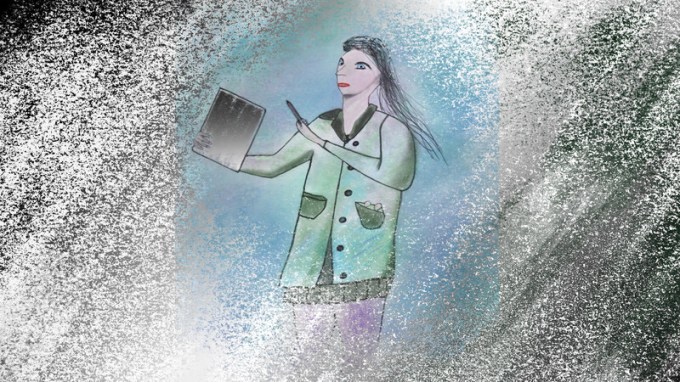 I then used Artstudio Pro on the iPad to add a background and other elements to it and revised some aspects of it such as the medical instrument that is in one of the pockets (the original idea was to draw a female doctor or a female physician):