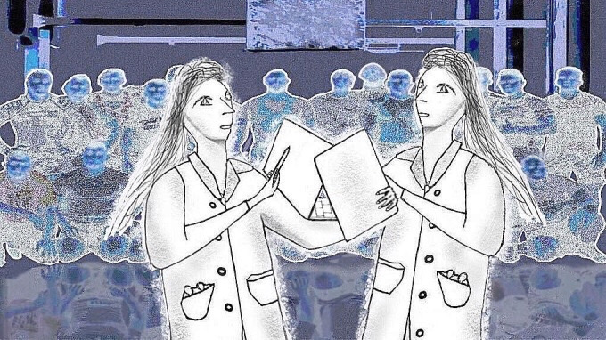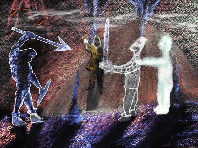 Here are my surreal and digital versions with lots of touching up and even adding morphed body parts due to the effects such as invert or posterize merging them.