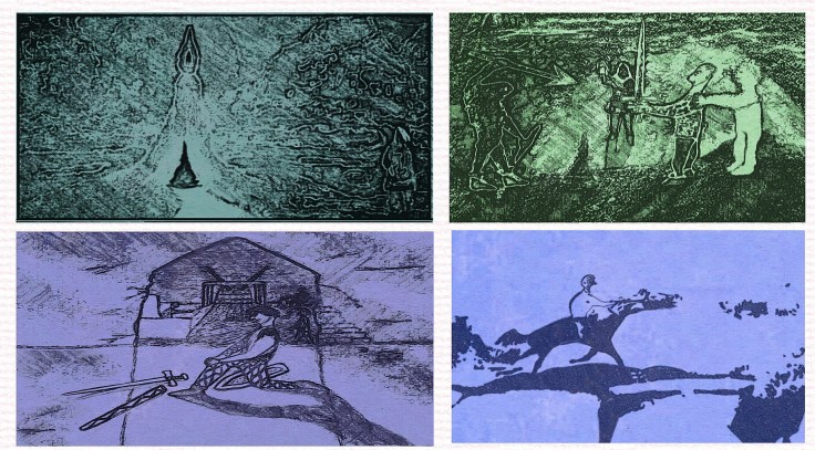 The design above was based on a previous design I created and was also inspired by TES IV Loading screen art. Here are some more versions: