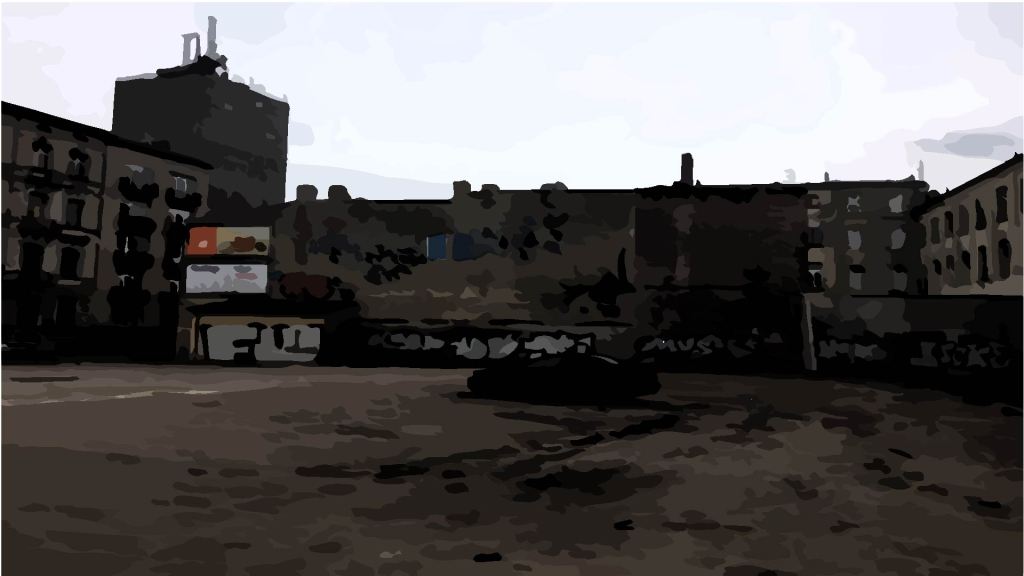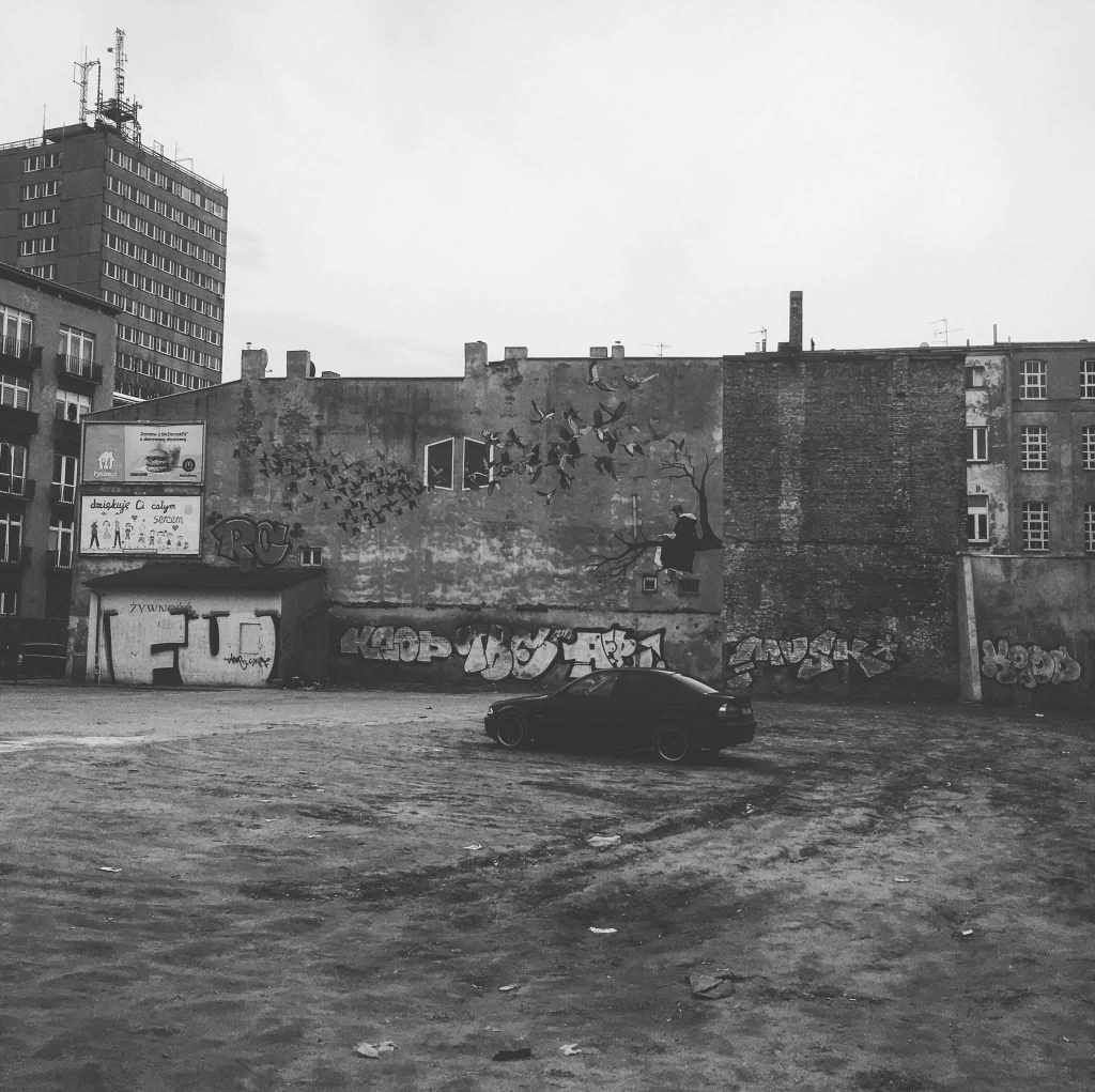 I took some dystopian photographs of a stark urban scene that reminded me of a post-apocalyptic landscape from a movie like Mad Max but in our present reality of sorts. It was as if I found this scene on a whim or out of the blue yesterday walking about in Lodz, Poland. Post apocalyptic urban photos are a hobby of mine and it is so rare to find images like this to capture when out just strolling about. By the way, I should be adding some of these to the Photography section of this site.