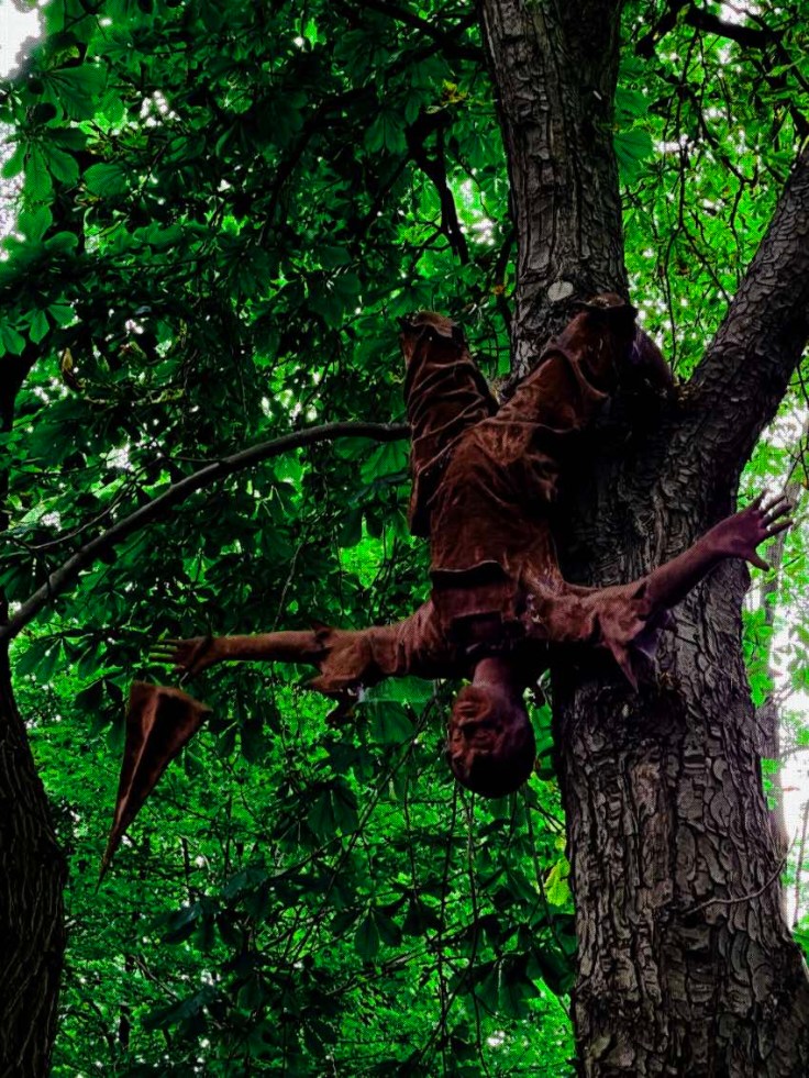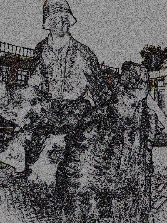 The above image had some curves or shadows and contrast added, but was pretty bare bones from the original photo I took in Warsaw of the monument of the fighters of the Warsaw uprising. As you see in the monument, they used to get into the Warsaw tunnels as they fought the Germans around the city. I used to live in Warsaw a few years ago, but am currently in Lodz. However, I then made this version seem as if it was taken at night, but it wasn’t and changed the color of the rock or building block making up the overall monument and its figures: