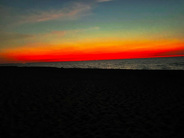 Below is an original photo I took of the Vistula river in Warsaw and me enhancing it digitally as well as changing up the color hues and making it seem more dark or like it was taken during the night than when I took the photo. You may notice some fishing rods or fishermen present within the photo and no those were not surfers in the background, I actually forgot what they were holding although it does look like surf boards at a glance: