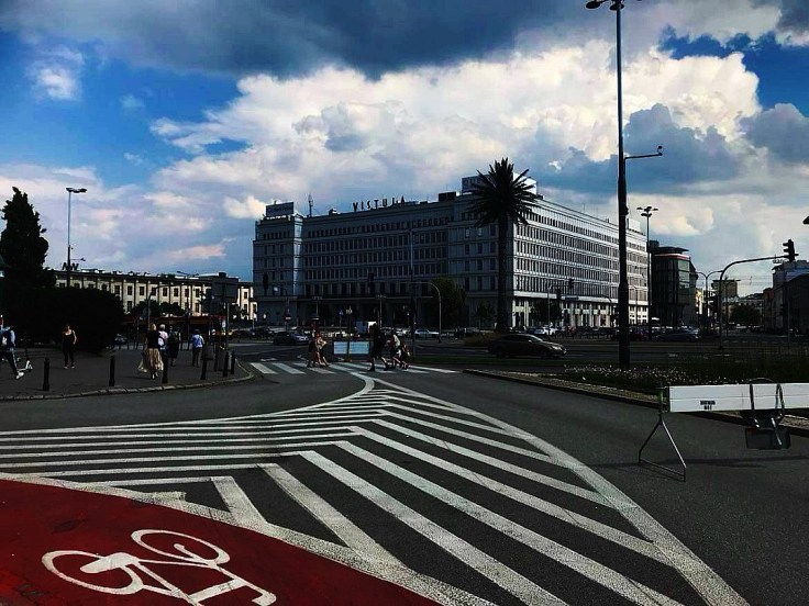 Downtown Warsaw, Poland showing the famous fake palm tree: