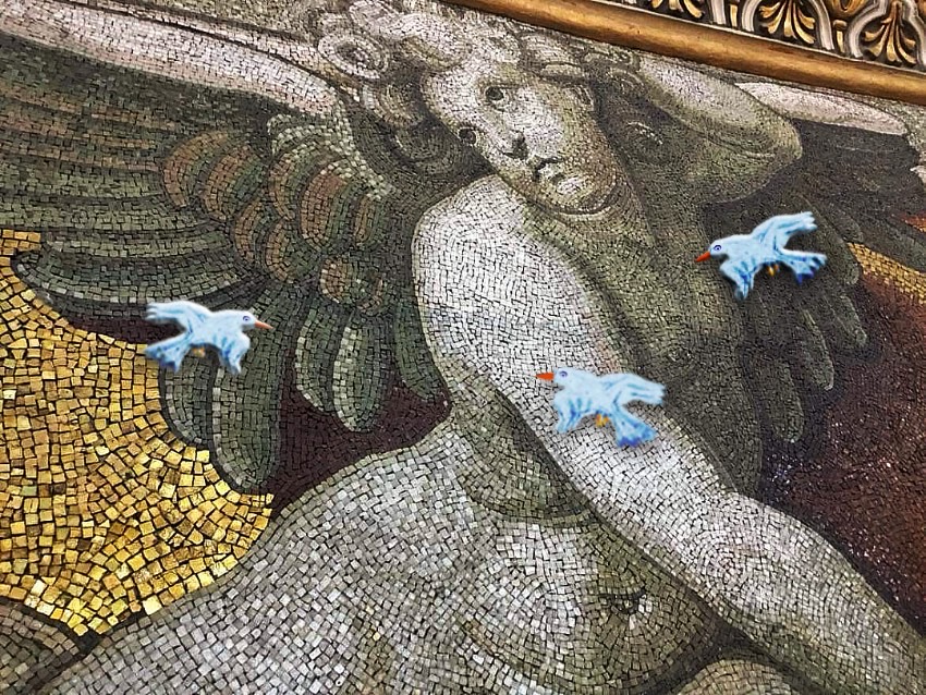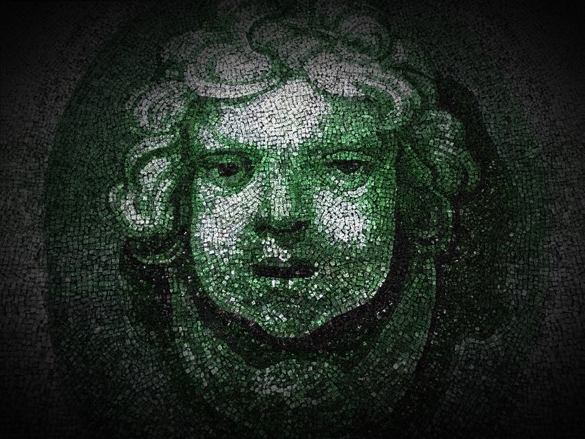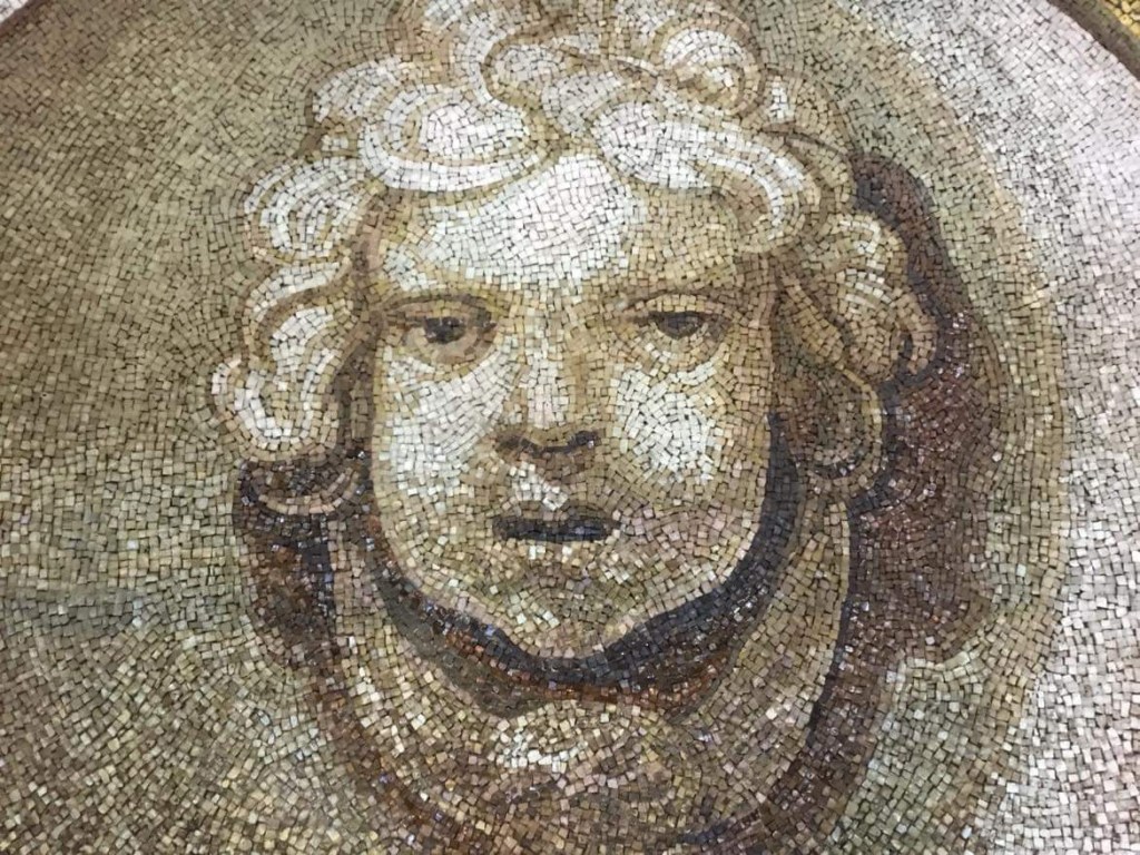 The first photograph below is that of a face done in mosaic or fresco (not an expert on tiling or such art styles) flooring within the main cathedral inside the Vatican, in Rome, Italy. I took the photo while on a trip to the cathedral. I changed it a bit digitally to enhance it from the raw photograph: