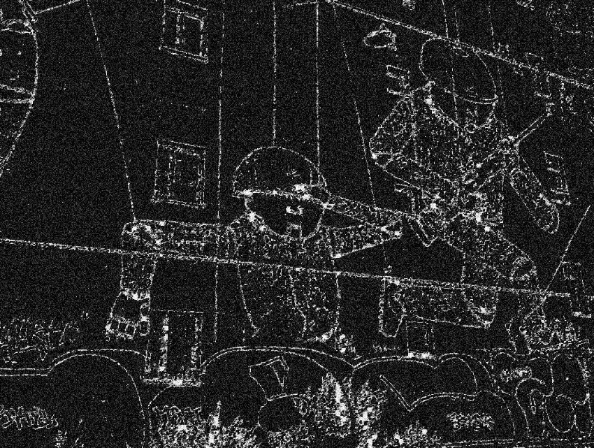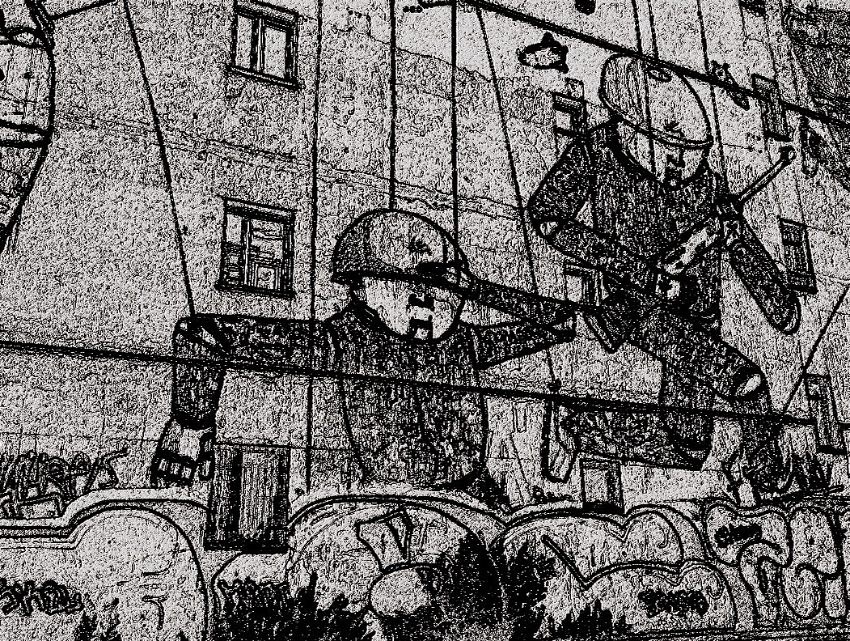 However, I noticed the face of the soldier standing and in the background is not fully formed despite me liking the overall effect this gave it. So I fixed it myself below using a combination of mirroring the other side of the face and the clone tool: