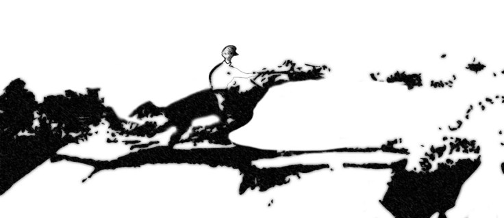 If you have been checking out the site for a while, you may have seen the image above I created some time ago digitally. However, in this latest version I fixed the rider to have some weight on him as he sits on the saddle and his legs to be more of a realistic size to hang down form the side of the horse. Other versions, more abstract, below: