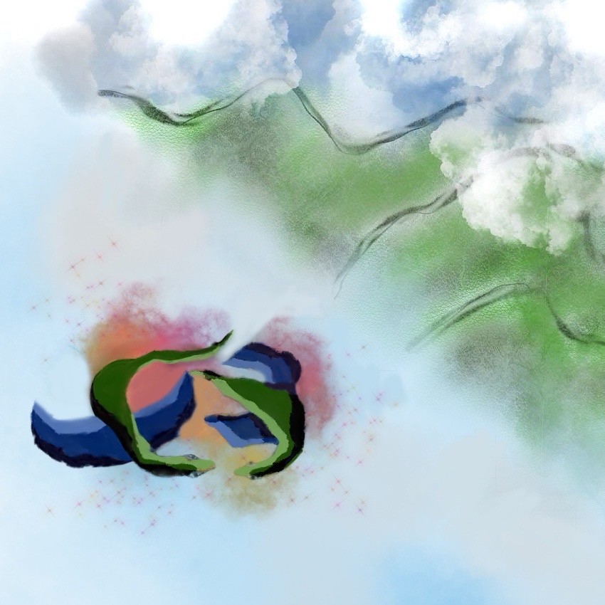 Here is another illustration or graphic design. My original hand drawing using paper and pencil that I simply took a screenshot of and added a color hue to. It was, is if I recall correctly, a purely digital creation:
