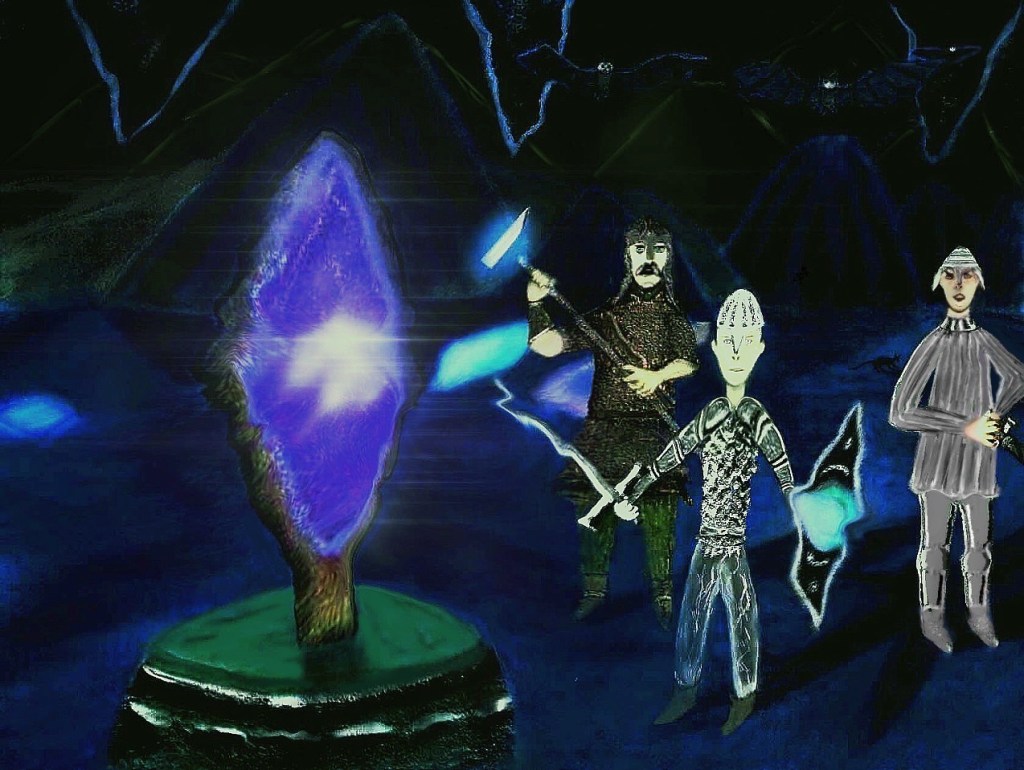 This image above is a take on a previous Dark-Souls inspired image. In this version above you may notice the crystal on top does not have a loop or magic coming out of it, but the one on the bottom does. Below is an older version of it, but still a newer version of something I worked on ealrier. The original also was based partly on a hand-drawn evrsion I did, which you can see below as well.