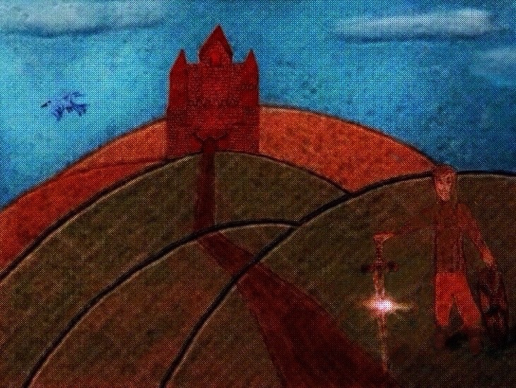 This is a castle that started out as a pencil drawing I took a photo of and turned into a digital illustration later adding a horse rider to it: