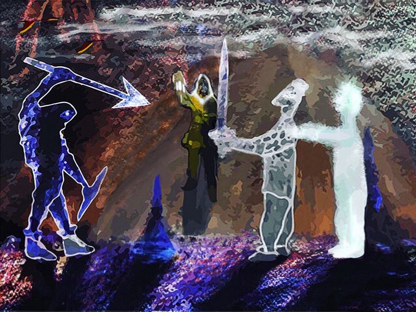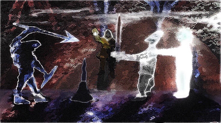 Some other fantasy artwork and digital art I want to add here that I create din the past, The first one below is a wizard I used Adobe Illustrator to outline and the two ghost-like guardians on either side were originally pictures I took from props in a museum in Warsaw.