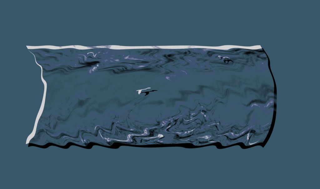 Bird through clouds (2018) – I drew this bird digitally on iPad and used my own sky photography for background art:
