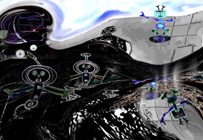 Combining photography (I took personally) with graphic design for robotics and artificial intelligence ideas: