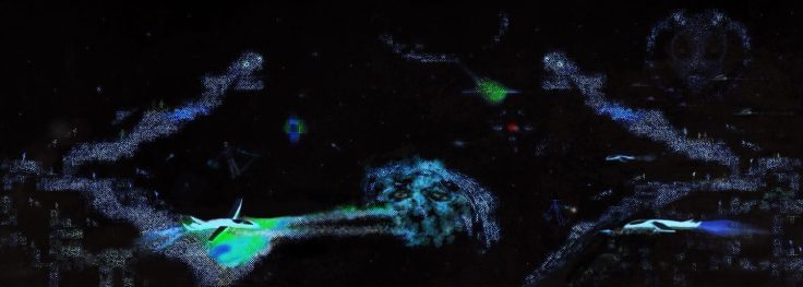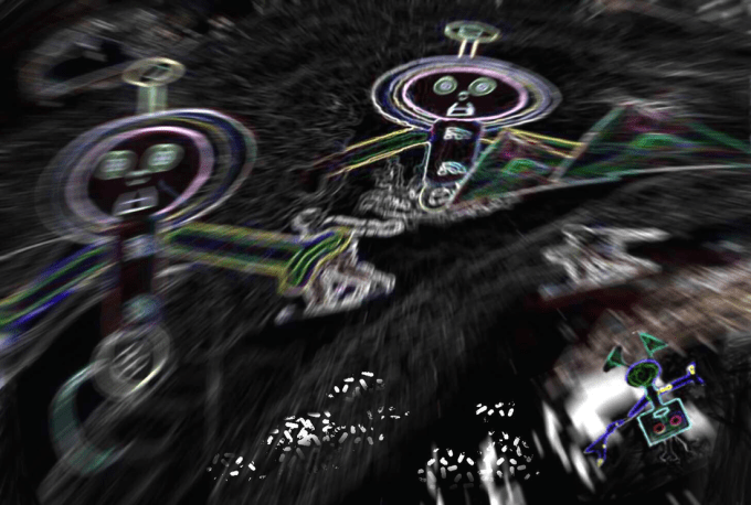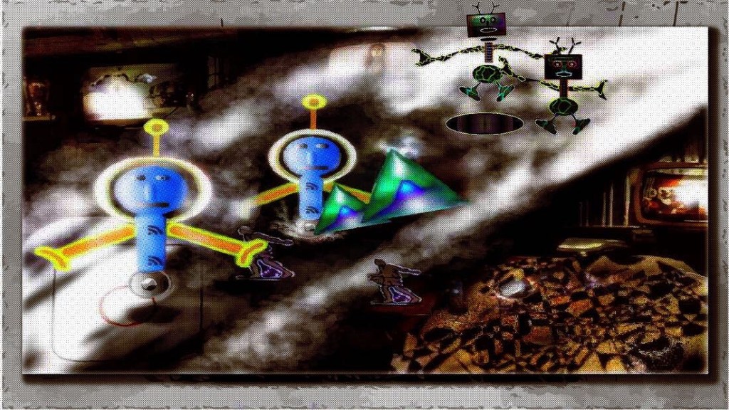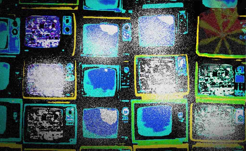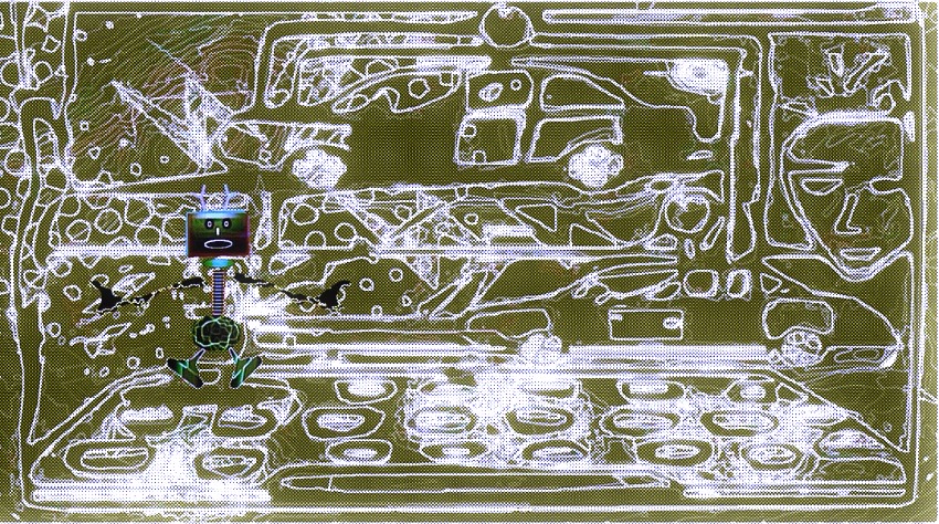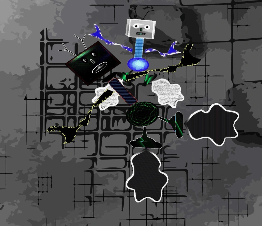 These skulls on the TVs formed like automatically without me trying to form them and based on another design I added to the TV sets: