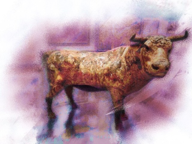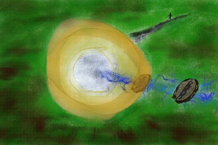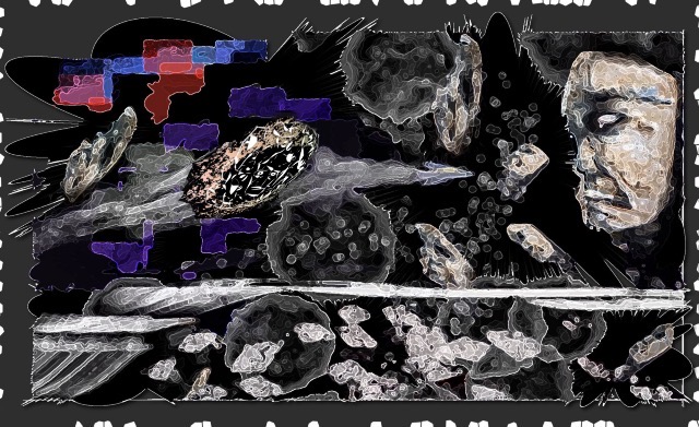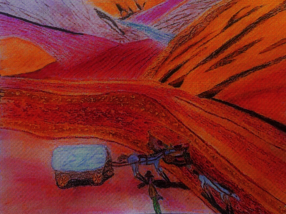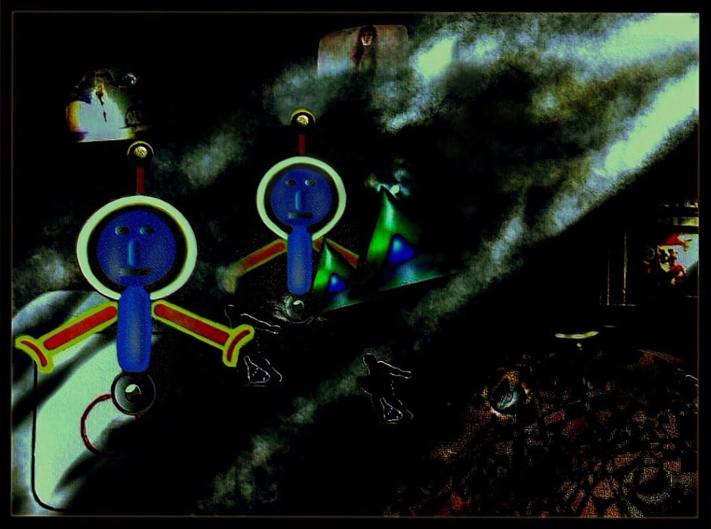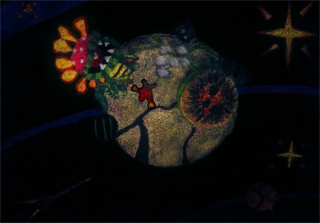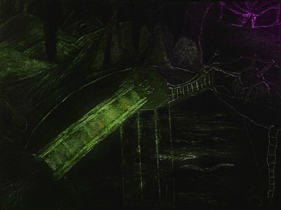 Like the above, this one started as a hand-made artwork, mix of oil and both hard and soft pastels, however, I have moved or added a second lantern in the background and used the clone tool to entirely change or fix the thrown-like chair and added other pure digital changes to it: