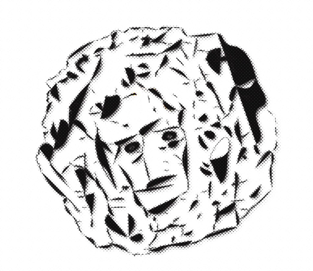 This is like a map of an older role playing game or that was my idea behind it, or of topography, but it also has a face on it if you look closely: