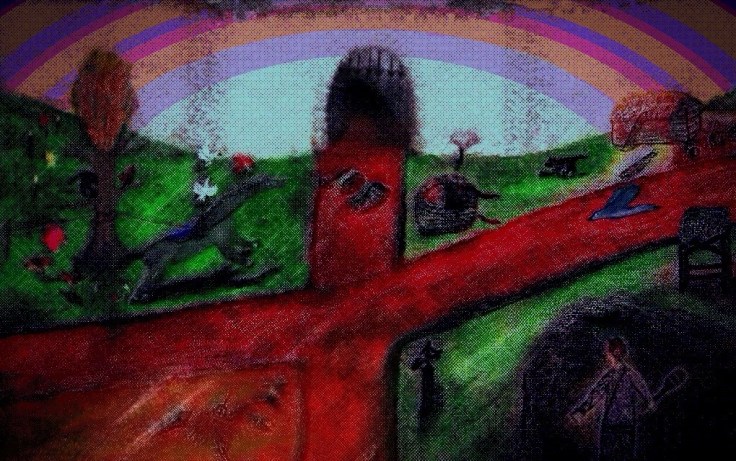 The last version above is the most colorful, but I have other revisions of it available. The road keeps going from the computerized screen to the real world. I was thinking this may be off putting when first seeing it, but I remember it was a decision I made at the time as it made sense it would have a road to continue on.