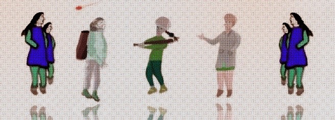 playing with perspective or different layers of background: