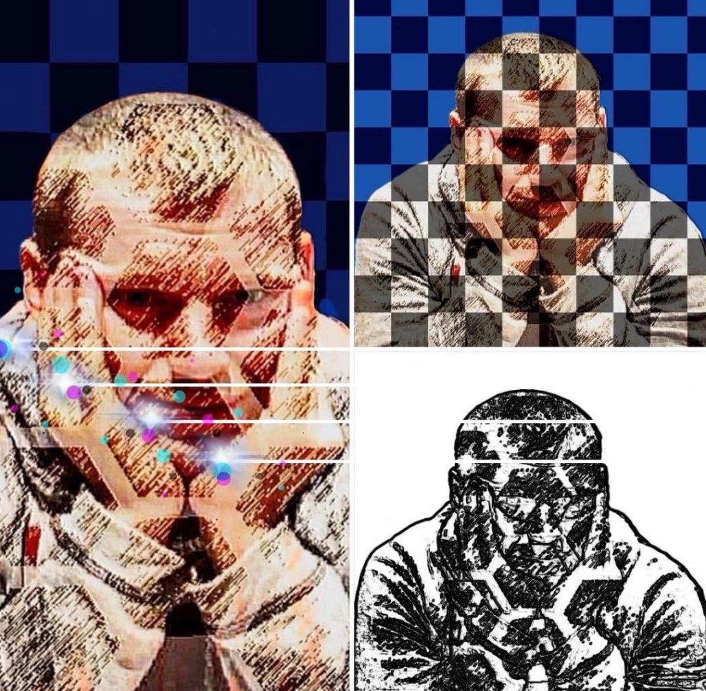Some designs I created from a photograph that has me in it after a wrestling class (I enjoy manipulating photographs and turning them into surreal designs):