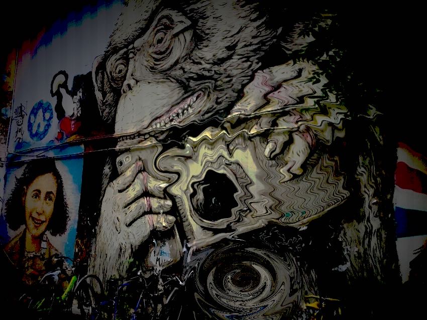 Combining three separate photos I took on my travels into one image (two being street art one being a painting in some museum of sorts fot the space-like void or background):
