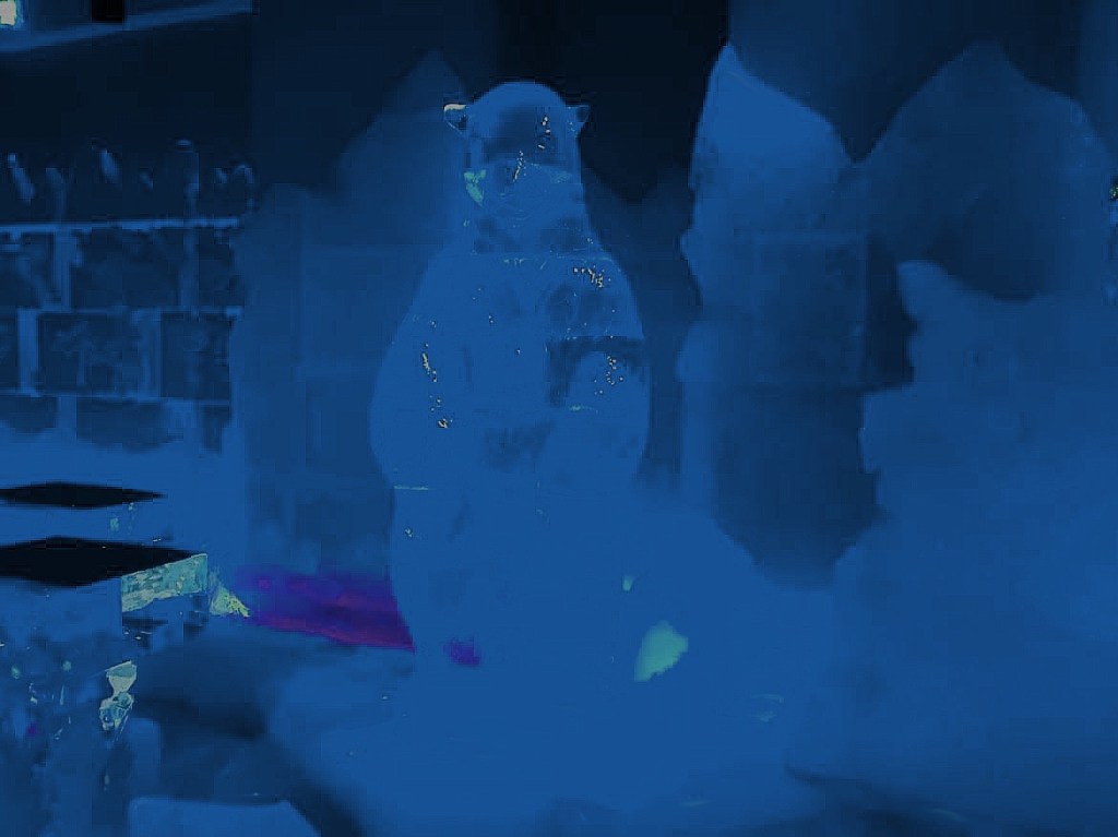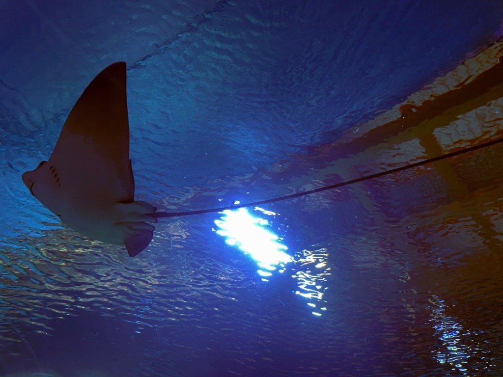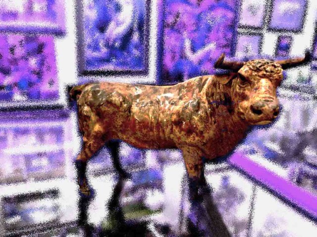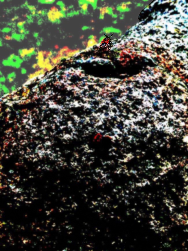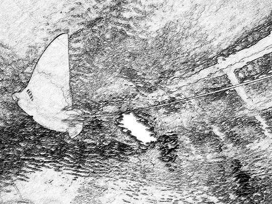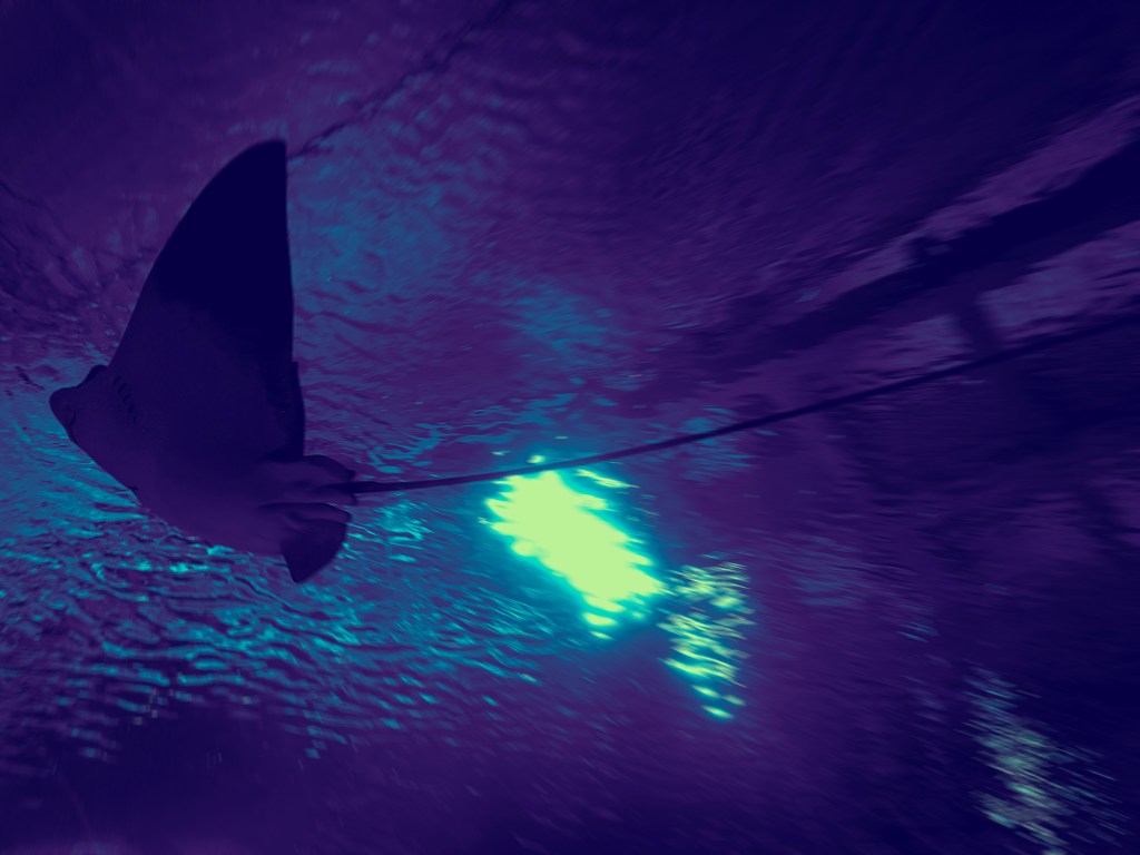 Both of the images below are enhanced via software of an image I took at a Lodz, Poland zoo facility with sea life present — although the image below has more software tricks and some blur involved as well as color changes: