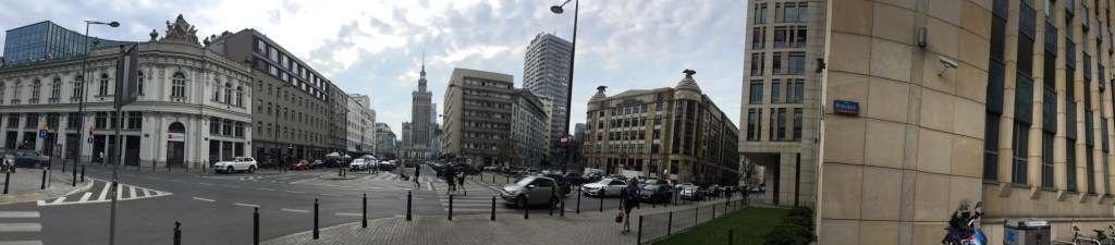 Downtown Warsaw, Poland showing the famous fake palm tree: