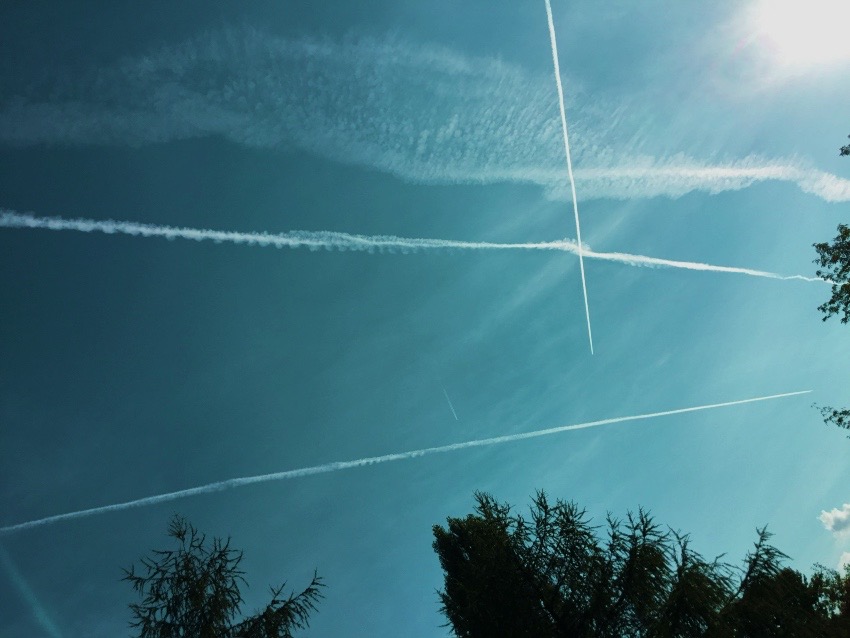 An interesting sky I saw one day while walking in the botanic garden of Lodz. I think some planes must have flew by earlier: